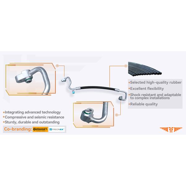 Our air conditioning ducting is primarily constructed of aluminum, combined with highly flexible hoses, allowing it to bend and move easily in tight spaces. It seamlessly integrates with other components of the vehicle's air conditioning system, making installation a breeze. We use high-quality rubber or synthetic materials that are resistant to pressure, corrosion, and aging, and incorporate reinforced braiding to ensure excellent pressure, vibration, and weather resistance, making it easily resistant to complex road conditions and extreme temperatures. We understand that safety is paramount and strictly adhere to industry standards to provide you with a long-lasting, stable, safe, and worry-free air conditioning system.