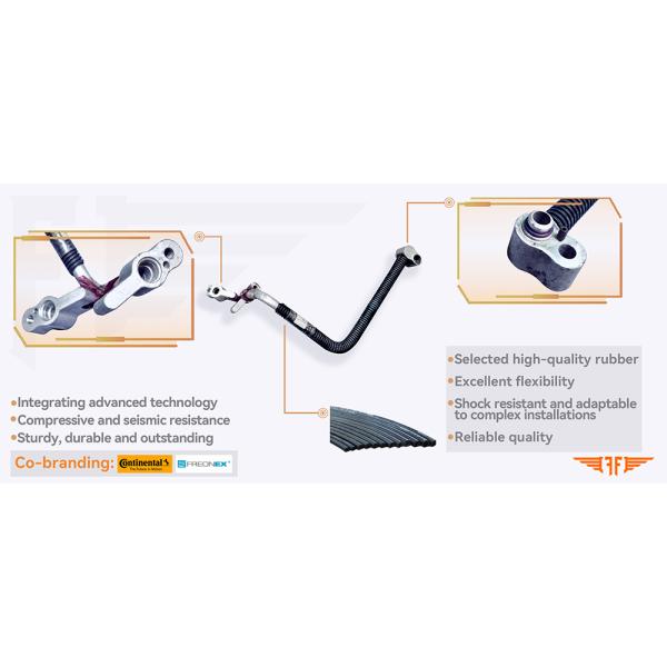 Our air conditioning ducting is primarily constructed of aluminum, combined with highly flexible hoses, allowing it to bend and move easily in tight spaces. It seamlessly integrates with other components of the vehicle's air conditioning system, making installation a breeze. We use high-quality rubber or synthetic materials that are resistant to pressure, corrosion, and aging, and incorporate reinforced braiding to ensure excellent pressure, vibration, and weather resistance, making it easily resistant to complex road conditions and extreme temperatures. We understand that safety is paramount and strictly adhere to industry standards to provide you with a long-lasting, stable, safe, and worry-free air conditioning system.